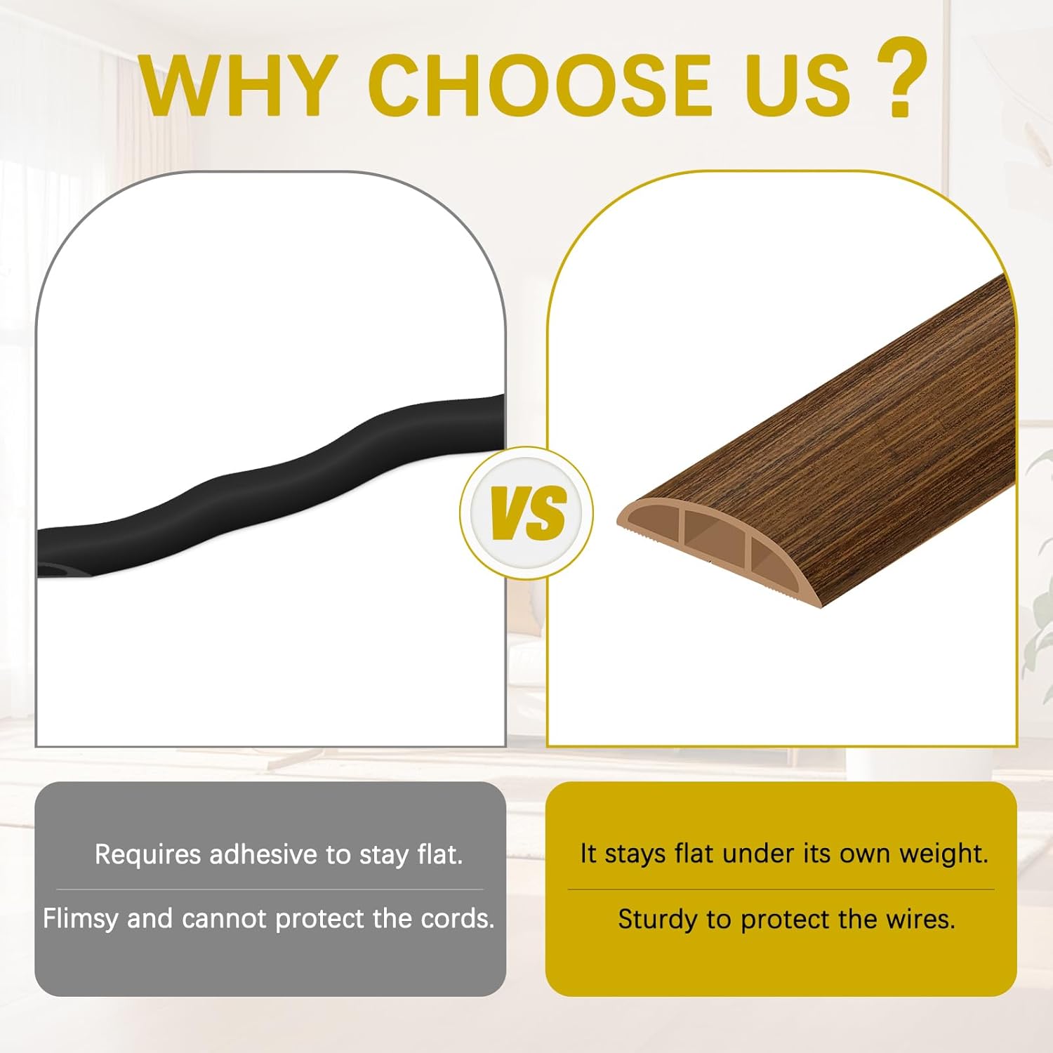 - 【Prevent Trip Hazards】Cord cover floor can be used to hide cables and wires under tables, corners and walls. Creating a safe environment for kids, seniors, and pets—no more dangerous loose wires!