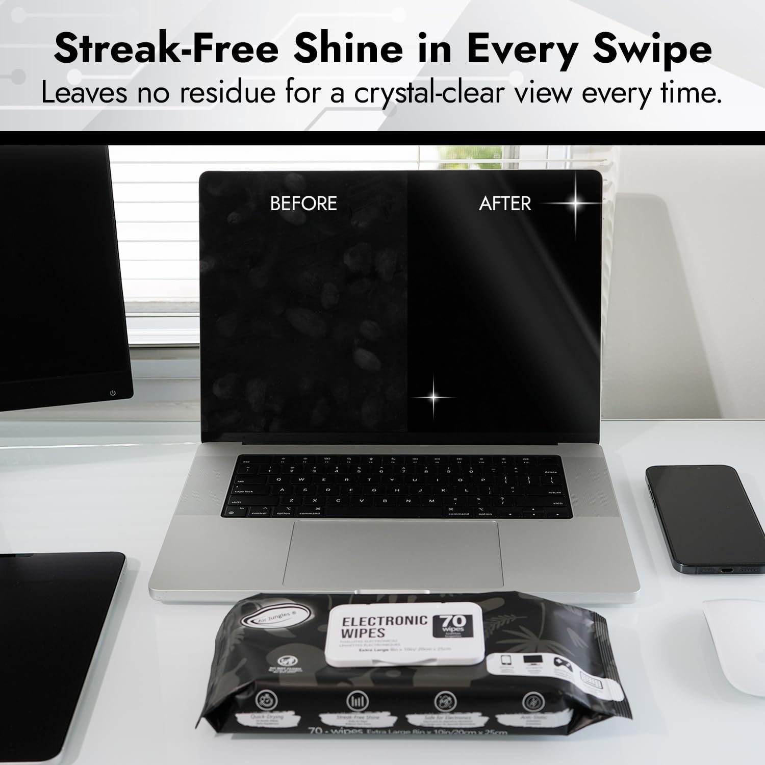 - Streak Free and Quick Dry: These screen cleaning wipes dry quickly, making them perfect for phones, tablets, laptops, and other electronic devices.
