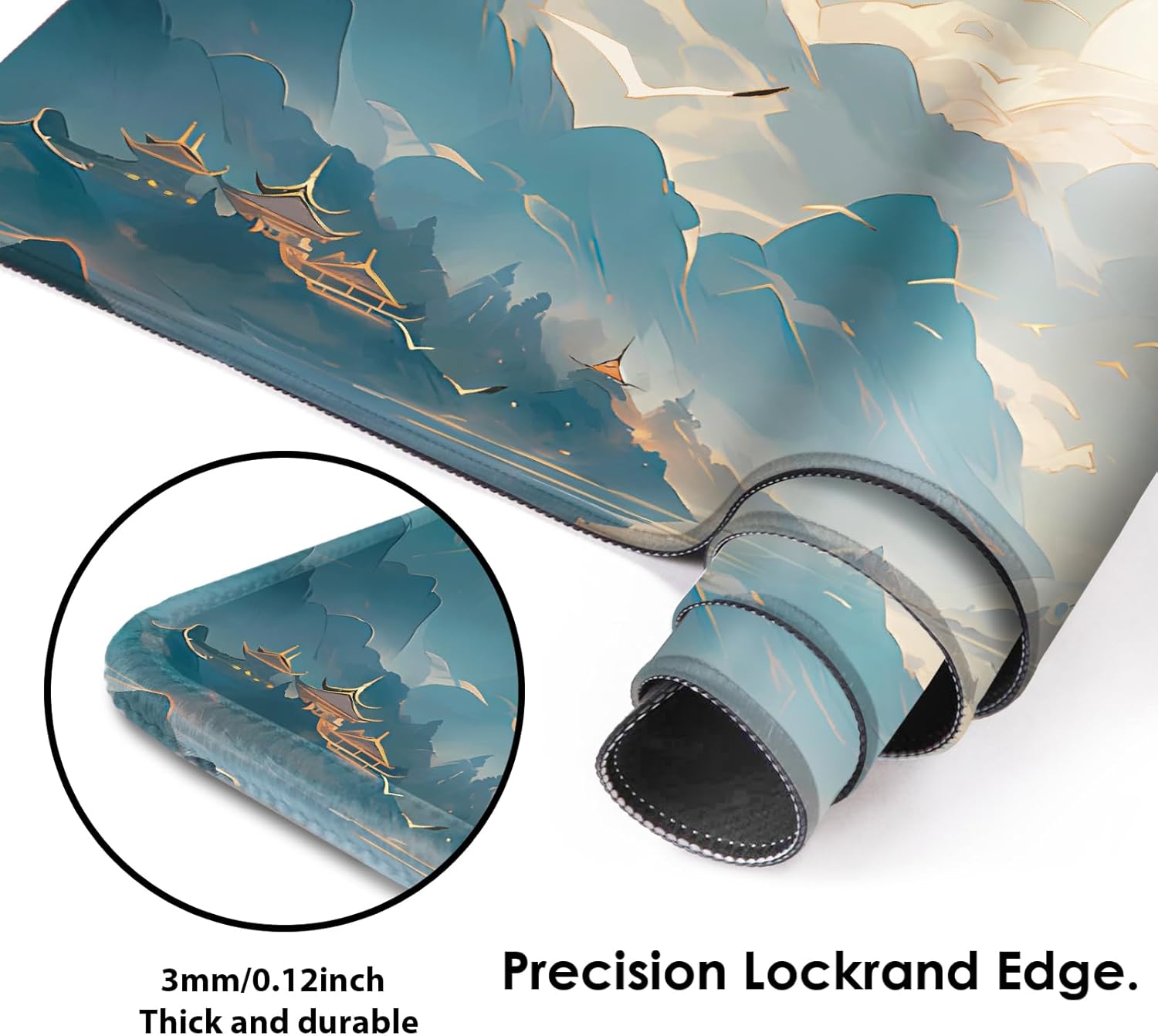 Galdas Gaming Mouse Pad XXL XL Large Long Extended Big Mousepad Non-Slip Rubber Keyboard Mouse Pad with Stitched Edges for Laptop Home Office (31.5x11.8x0.08 Inch) -Clouds