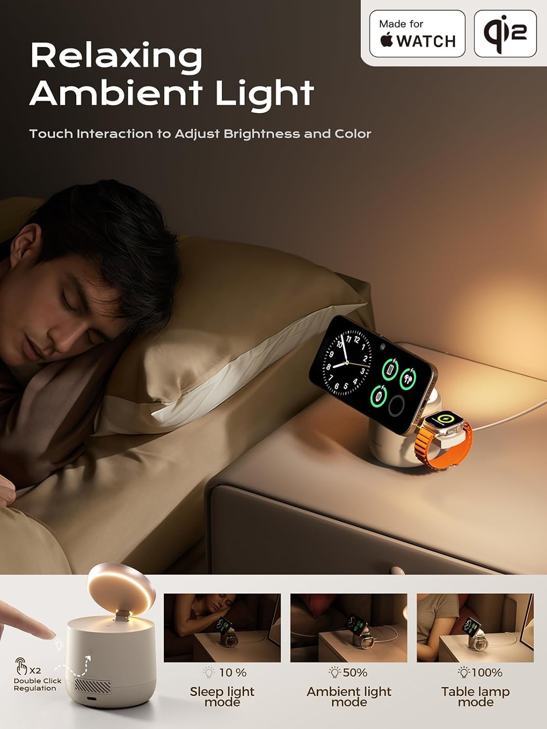 - Special Feature : 65W PD Adapter with 5ft Braided Cable included, Advanced AI Intelligent Chips Control Core,Skin-friendly Touch, Distinctively Elegant Design, Exclusive 3FT Retractable Cord & Relaxing Ambient Light, Magsafe Compatible & Made for Apple Watch, Qi2 Certified 15W Wireless Fast Charging 65W PD Adapter with 5ft Braided Cable included, Advanced AI Intelligent Chips Control Core,Skin-friendly Touch, Distinctively Elegant Design, Exclusive 3FT Retractable Cor… See more