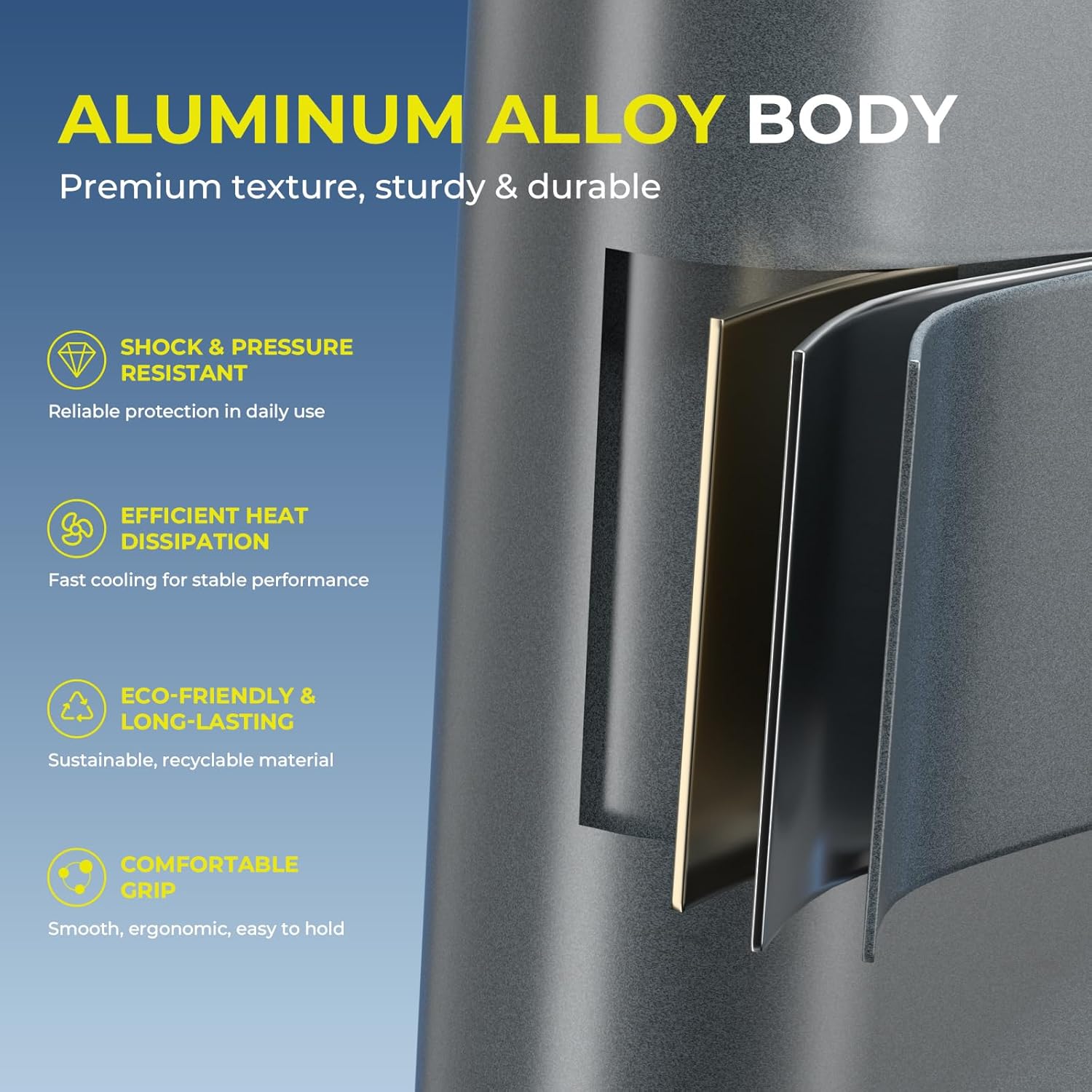 - [Premium Aluminum Alloy Body] Crafted with an aluminum alloy shell for a sleek, high-end texture. Sturdy, shock-resistant, and pressure-resistant with efficient heat dissipation to ensure stable and long-lasting performance.