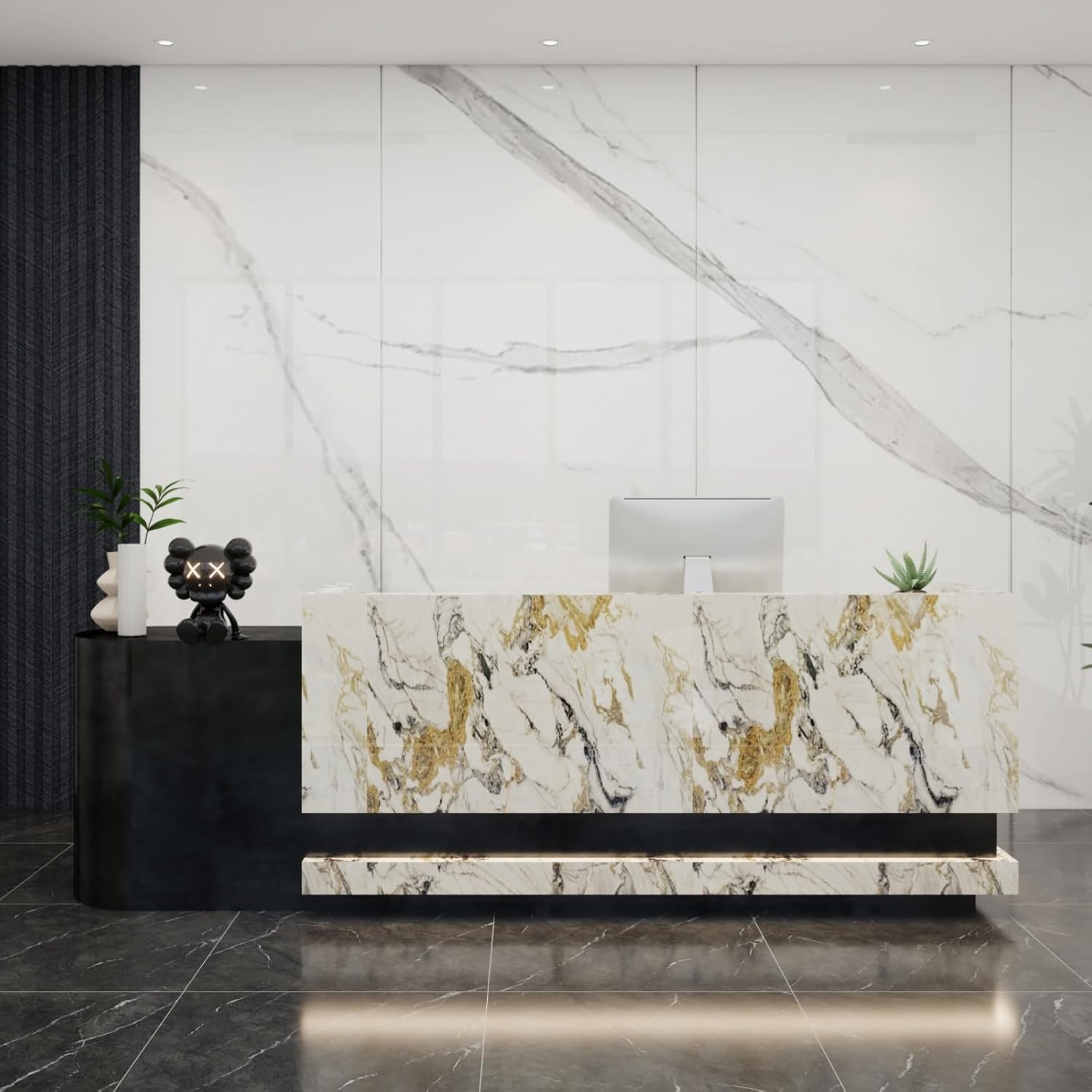 - 【Design Concept】The simple and smooth lines of the front desk balance functionality and visual beauty, effectively enhancing the professional image of the enterprise. The natural and delicate wood grain creates a kind and comfortable reception experience for visitors. The product has undergone strict technological treatment to ensure stable performance in various temperature and humidity environments. The neutral color scheme is easy to match with different styles of interior decoration.