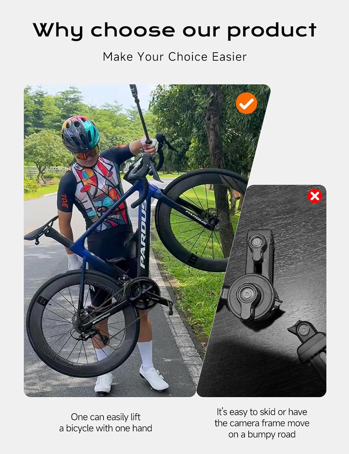 - 【Designed for Bike/Motor】Designed specifically for bicycles/motorcycles/e-bikes/any round tubes; The optimal load is 6.6 lb (3KG). Standard 1/4 screws can be attached to most 1/4 nut accessories, compatible with invisible selfie stick/action cameras /insta360/DJI osmo pocket3/ small cameras/monitor /LED video lights/microphones/flashlights and so on