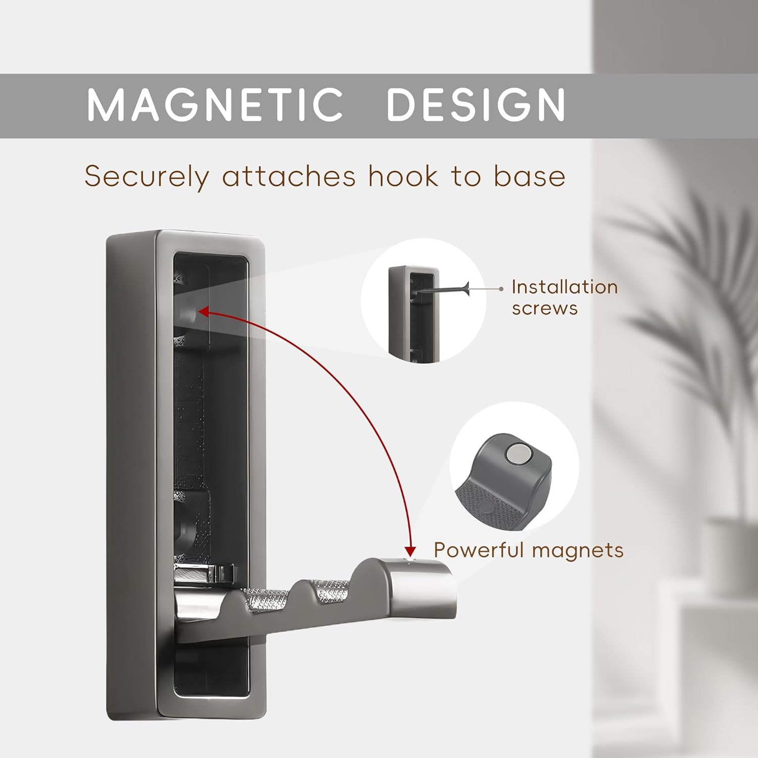 - [Magnetic Design]:The Foldable wall hanging hook is designed with magnets to ensure that it will not fall off when folded. When you need to hang something, simply press the hook lightly and it will pop out.
