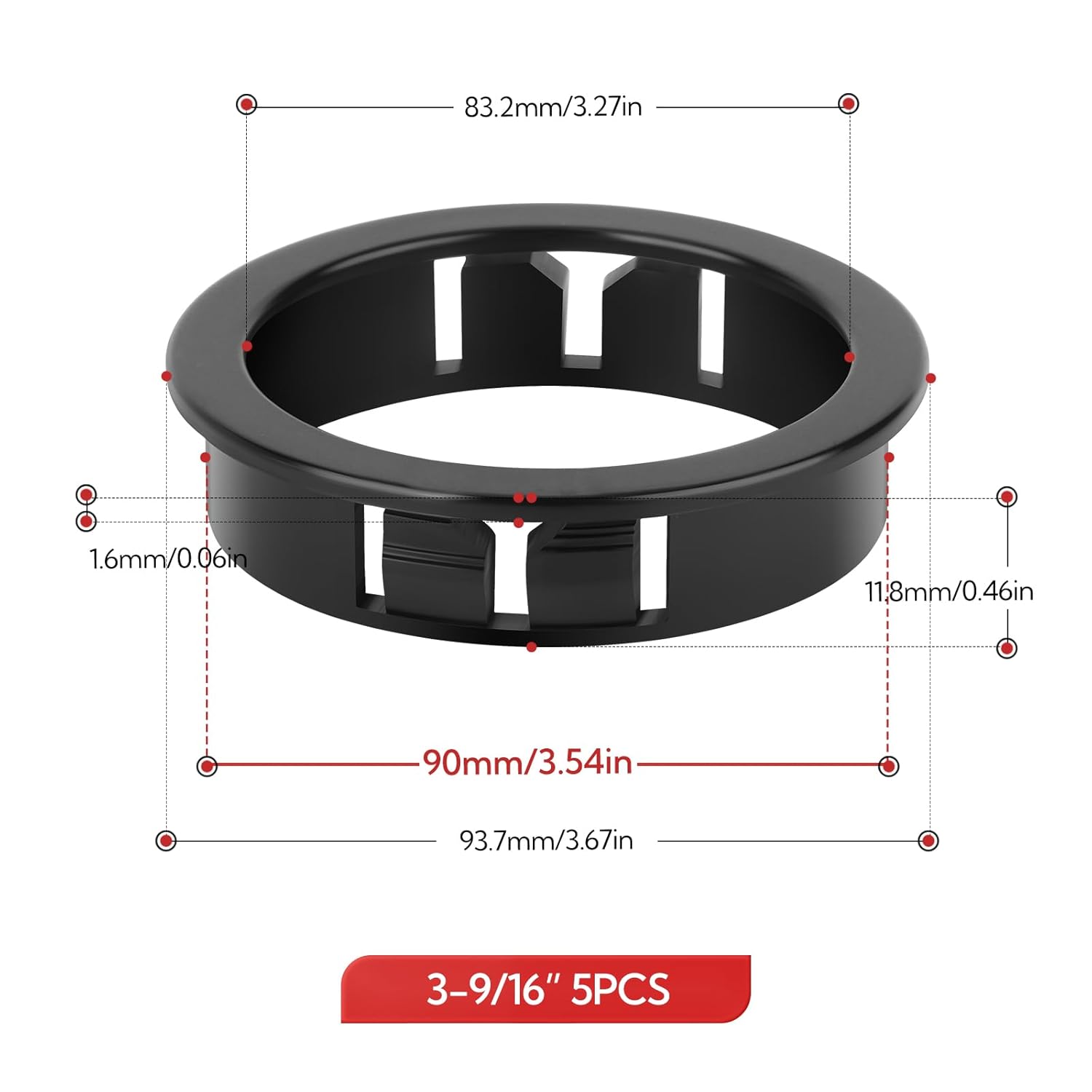 - Dimensions: Model SB-90 (5-piece pack), Inner Diameter: 83mm/3.2inches; Outer Diameter: 94mm/3.68 inches; Height: 11mm/0.45 inches; Mounting Hole Diameter: 90mm/3.54 inches