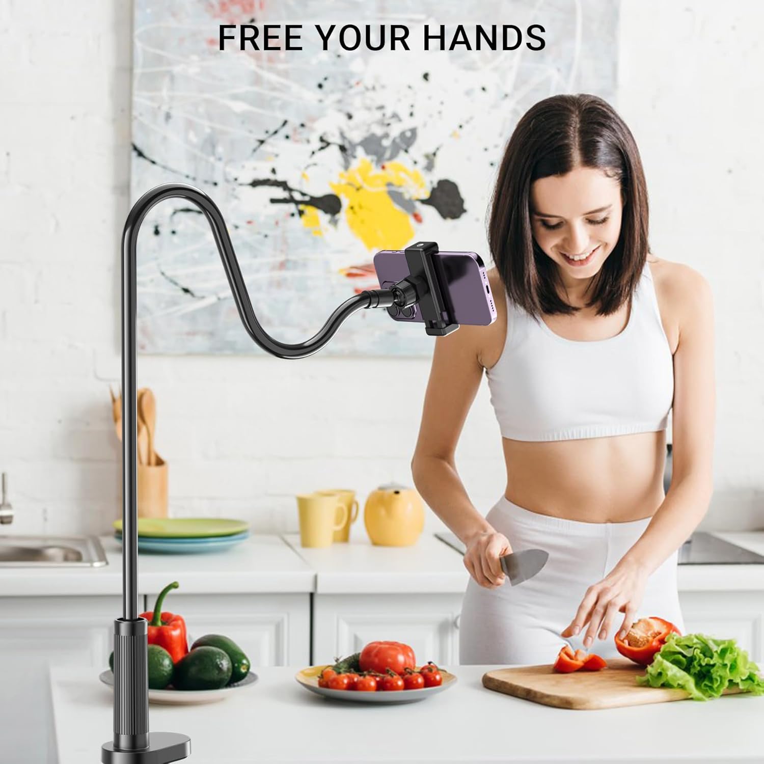 - 【Flexible Arm for Any Height/Angle】 Reach the ideal eye-level shot for TikTok video recording, YouTube Live streaming, or Instagram content creation. The extra-long, flexible gooseneck arm bends and holds securely, allowing you to easily adjust your camera's height and position over your monitor or desk for a more flattering and professional viewpoint.