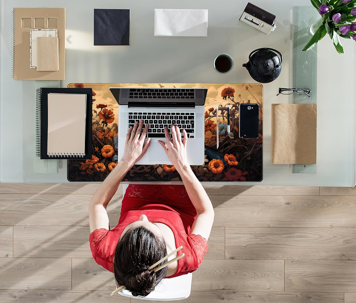 Anime Crow Kawaii Desk Mat Cute Retro Floral Mouse Pad Gaming Desk Pad XXL Large Desk Matt for Desktop Computer Mousepad, Laptop Keyboard Mouse Mat Office Decor Accessories for Women, 31.5x15.75 in