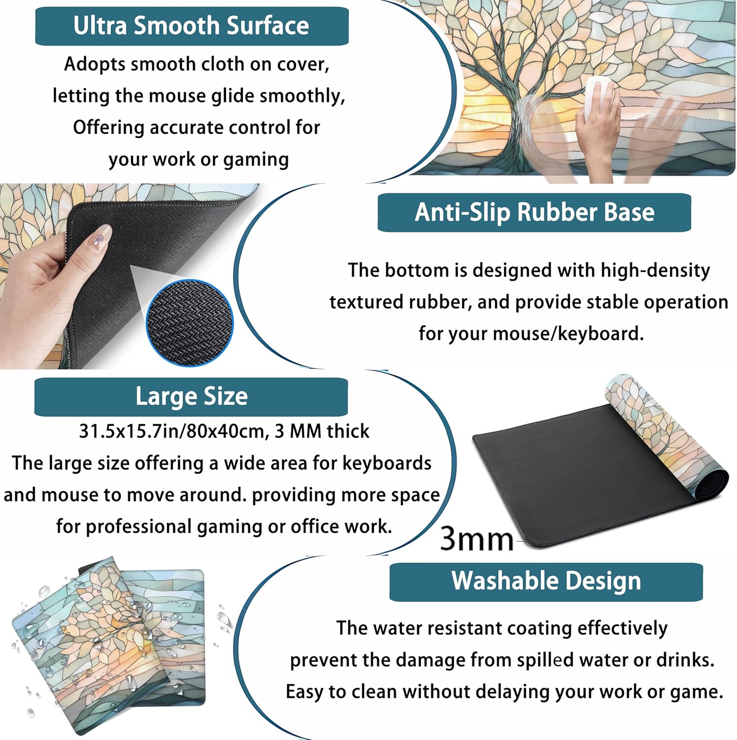 - 【31.5 x 15.75" Extended Size】This rectangular mouse pad is large enough to hold your mouse, gaming keyboard, MacBook, IPad. you can also use this extended mouse pad as a desk pad, writing pad, platform protector. Keep your desk clean and uncluttered