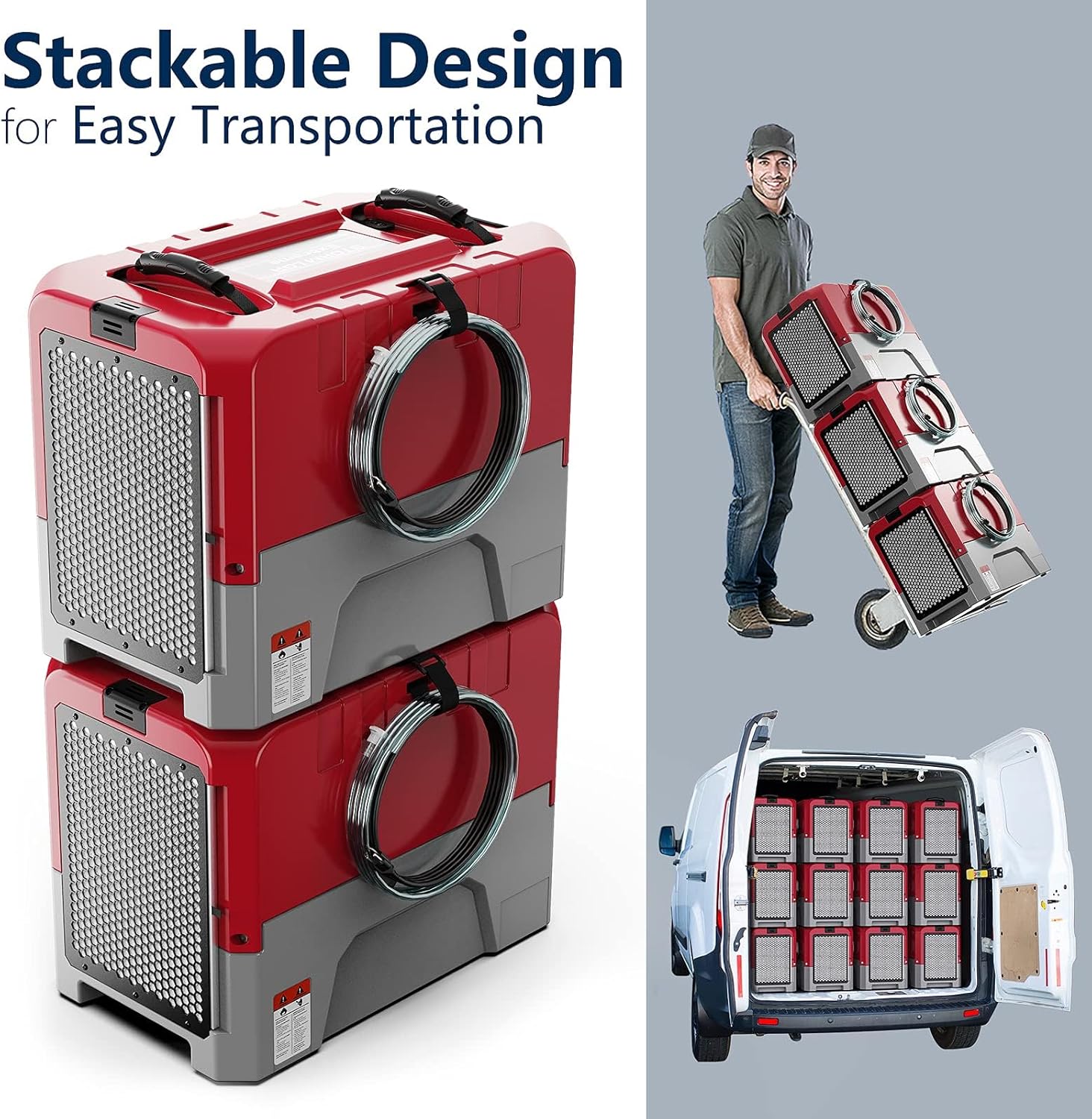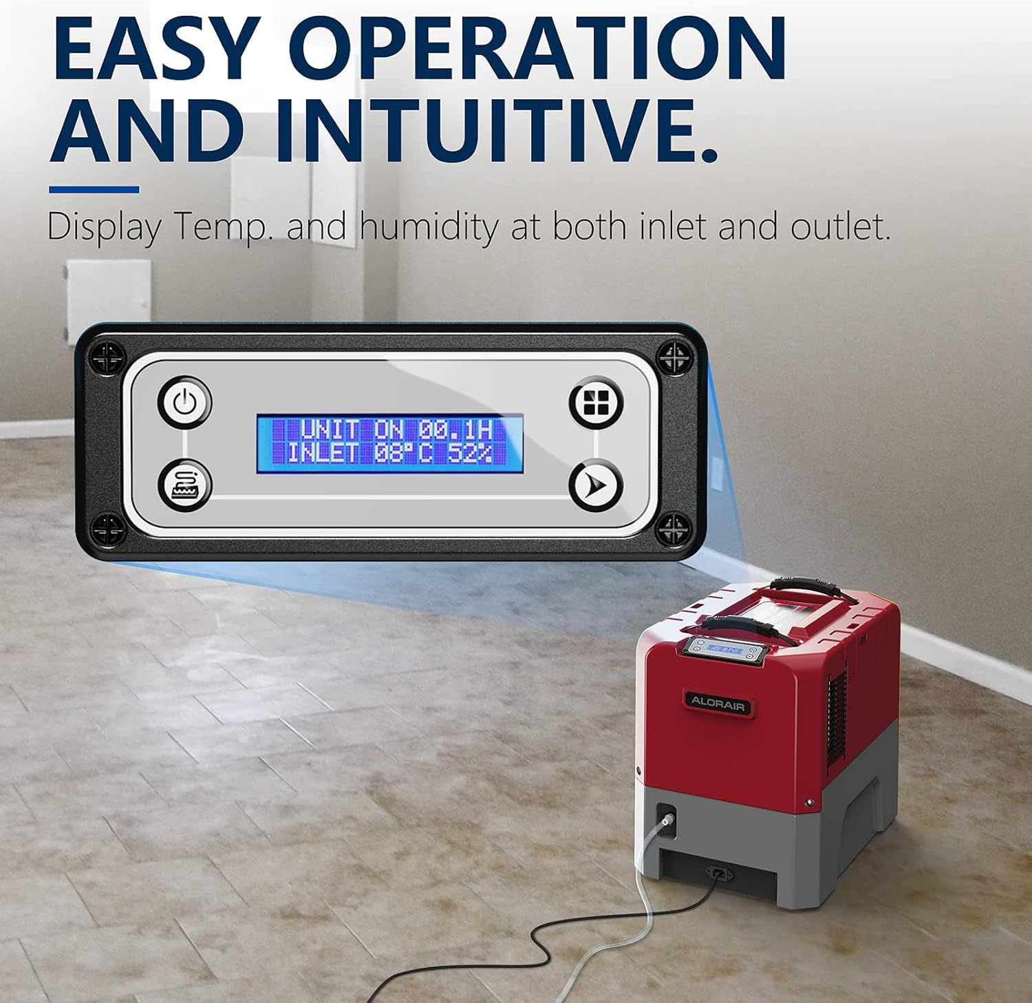 - App Control & Dry anywhere: MONITOR THE RESTORATION PROCESS ON THE GO! Our free AlorAir DryEasy mobile app is included with the unit upon purchase. Commercial Dehumidifier, Moisture Removal Capacity 180 PPD at Saturation condition and 85 Pint at AHAM only with 5.62A, Super-Efficient System, fits into small spaces, Secure, compact stacking – transport multiple units on a hand truck