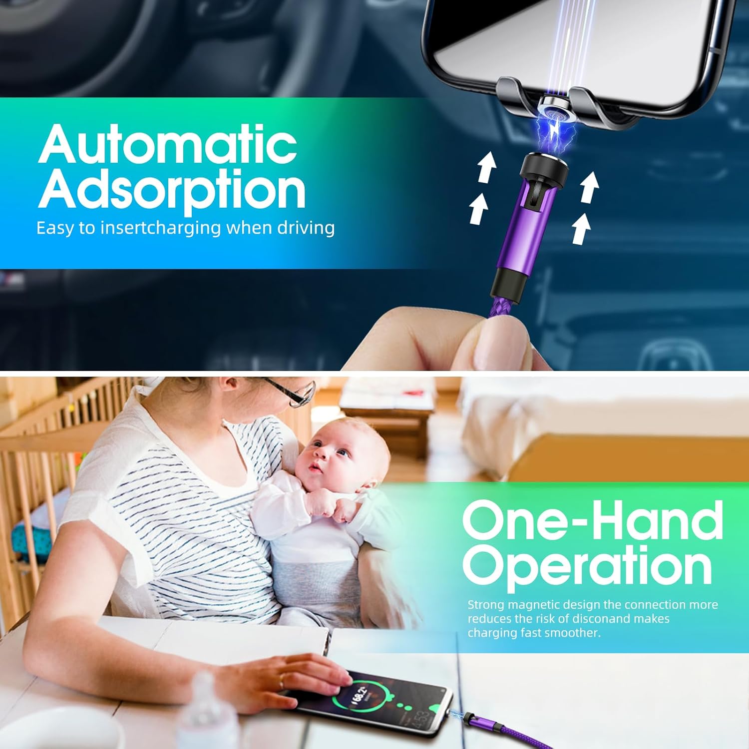 - 【One-Hand Operation Charging】The magnetic phone charger cable has strong magnetic, support magnet connect automatically and ensure stable connection. You can one hand to operate this phone charge cable to make charging on/off, it is convenient and safe while you are driving a car, it’s the best choice for drivers, vision impaired, elders persons.
