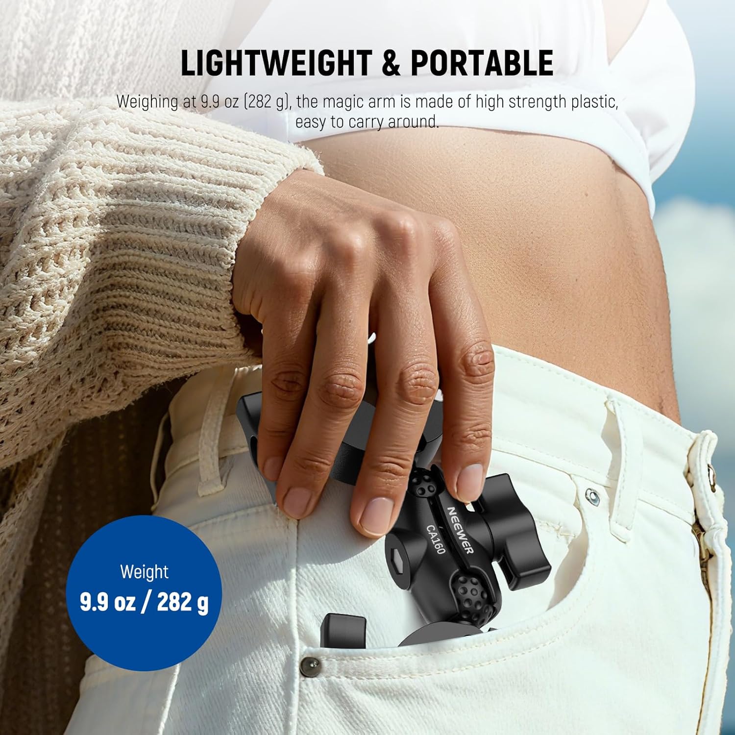 - 【Lightweight & Portable】 Weighing at 9.9 oz (282 g), the magic arm is made of high strength plastic, easy to carry around, ideal for video recording, vlogging, live streaming, outdoor shooting, and other photography and videography as content creator essential tripod accessories and influencer must have gear