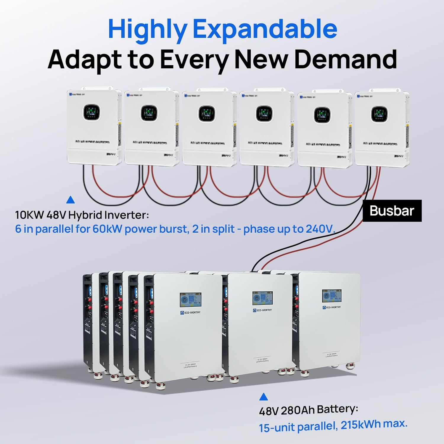 ECO-WORTHY 28.7kWh Home Power Station, 48V 280Ah (2 Pack) LiFePO4 Battery with Communication, 10KW Inverter for Home Backup, Off-Grid, Emergency Solar System