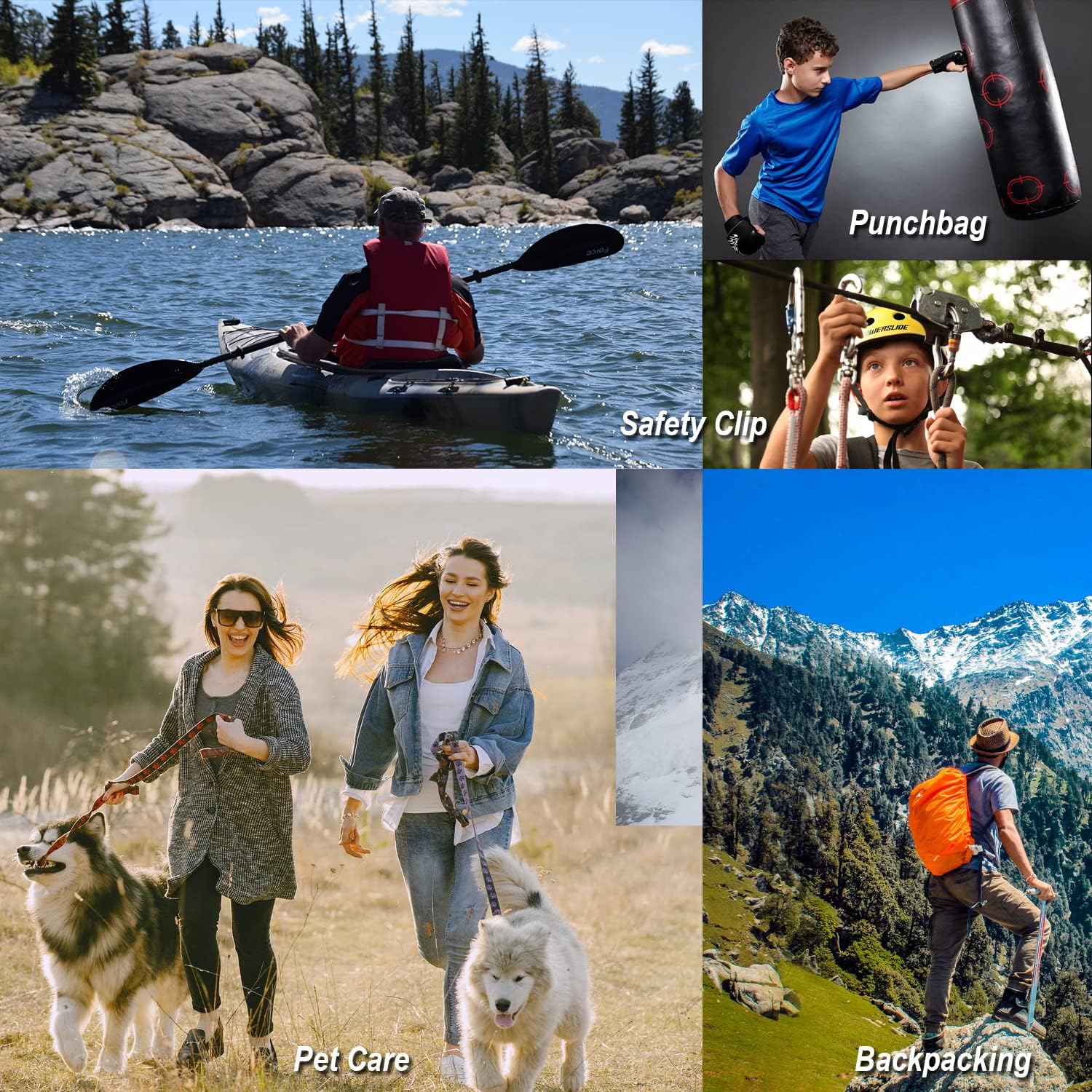 - 【STRONG CARABINER】-UIAA certified, Major axis strength 25kN (5,621lbs), Cross-loaded at 7kN, Hot forged construction rated for tree climbing, hiking, rappelling, rescue, locking big adult dogs, hammock, swing, etc