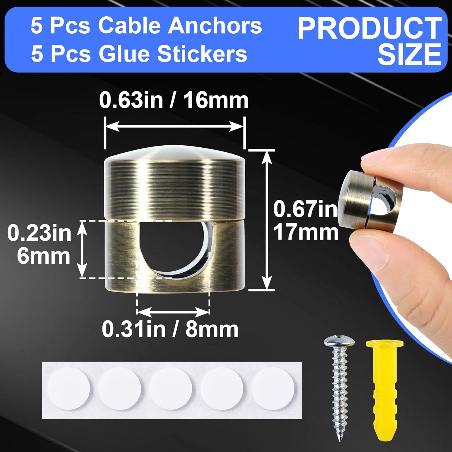 - Package Included and Size: You will receive 5 set of antique copper cable anchor holders for cords, enough for your daily use. The size of each cord holder is 0.67 x 0.63 in/17 x 16 mm and the hole size is 0.31 x 0.23 in/8 x 6 mm, easy to carry and use