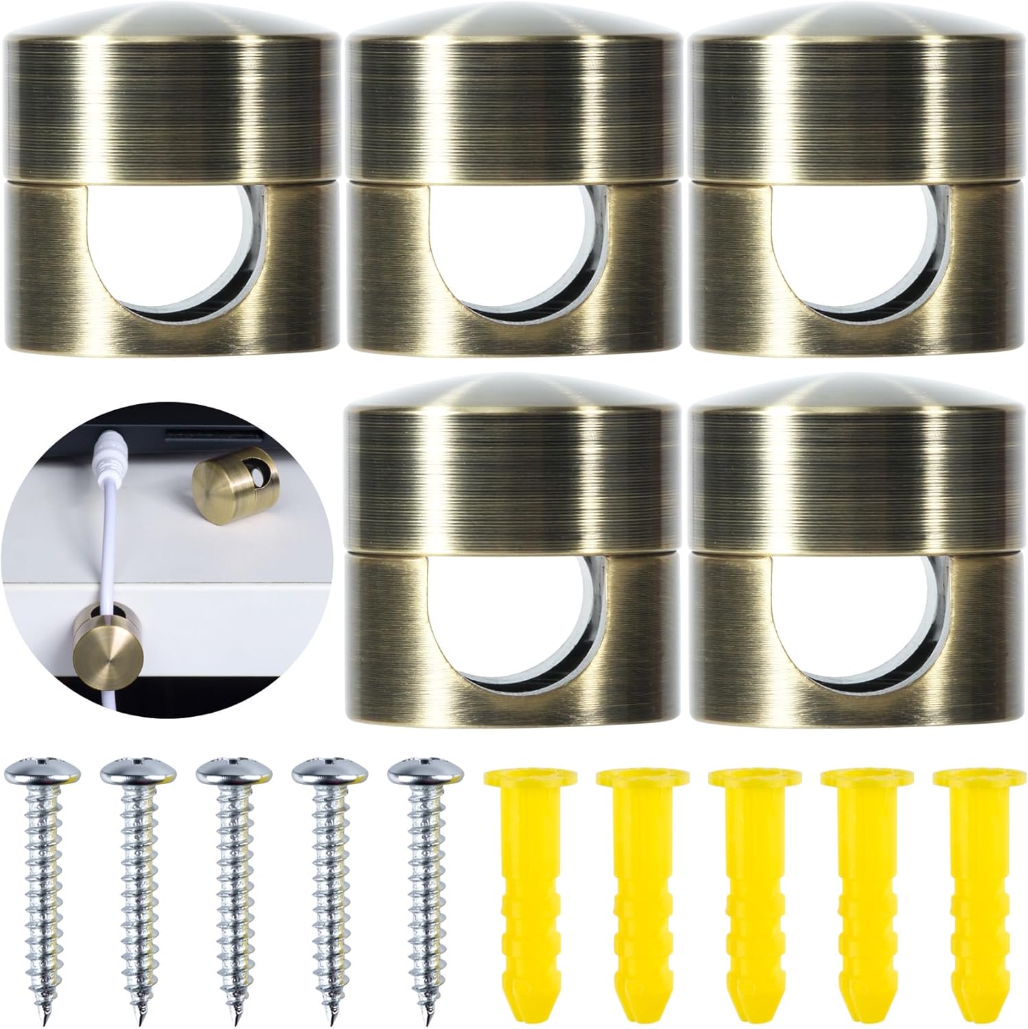 - Easy to Use: The package includes 5 stickers for using. You just need to clean the surface that you are going to attach the cord anchor to, then stick the antique copper cord holder on the surface with glue stickers, and thread the cable from the hole to keep it organized
