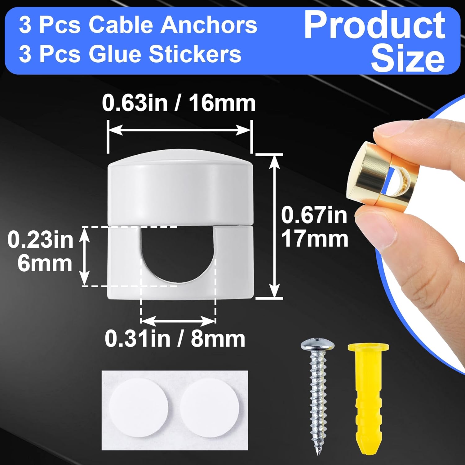 - Package Included and Size: You will receive 3 sets of cable anchor holders for cords in 3 different colors: black, red bronze, white, enough for your daily use. The size of each cord holder is 0.67 x 0.63 in/17 x 16 mm and the hole size is 0.31 x 0.23 in/8 x 6 mm, easy to carry and use