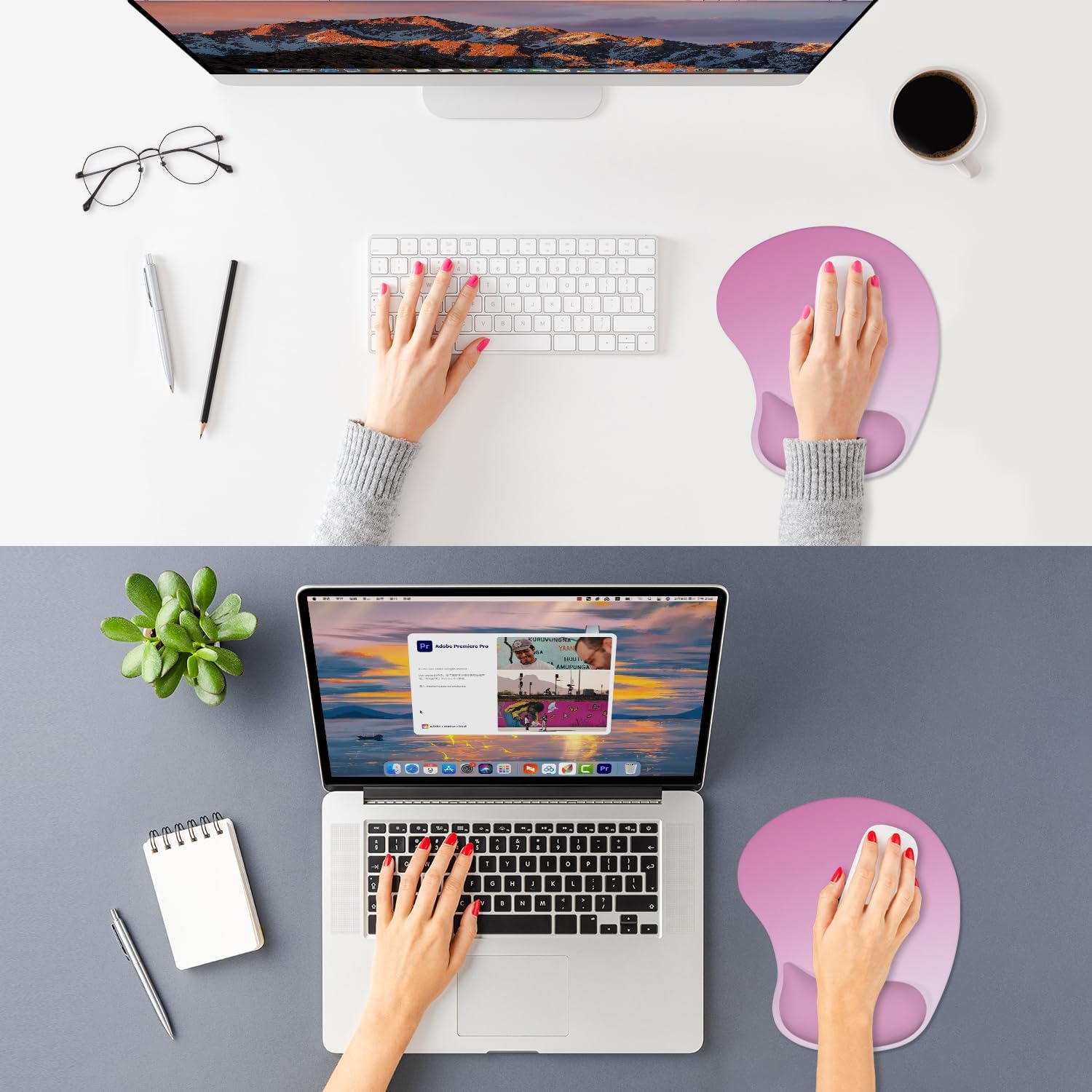 ITNRSIIET Ergonomic Mouse Pad, Cushioned Gel Wrist Rest, Non-Slip Base, Smooth Surface, Compatible with All Mice for Office & Gaming, Desk Accessory, 9.5 x 8.2 inch, Soft Pink Gradient
