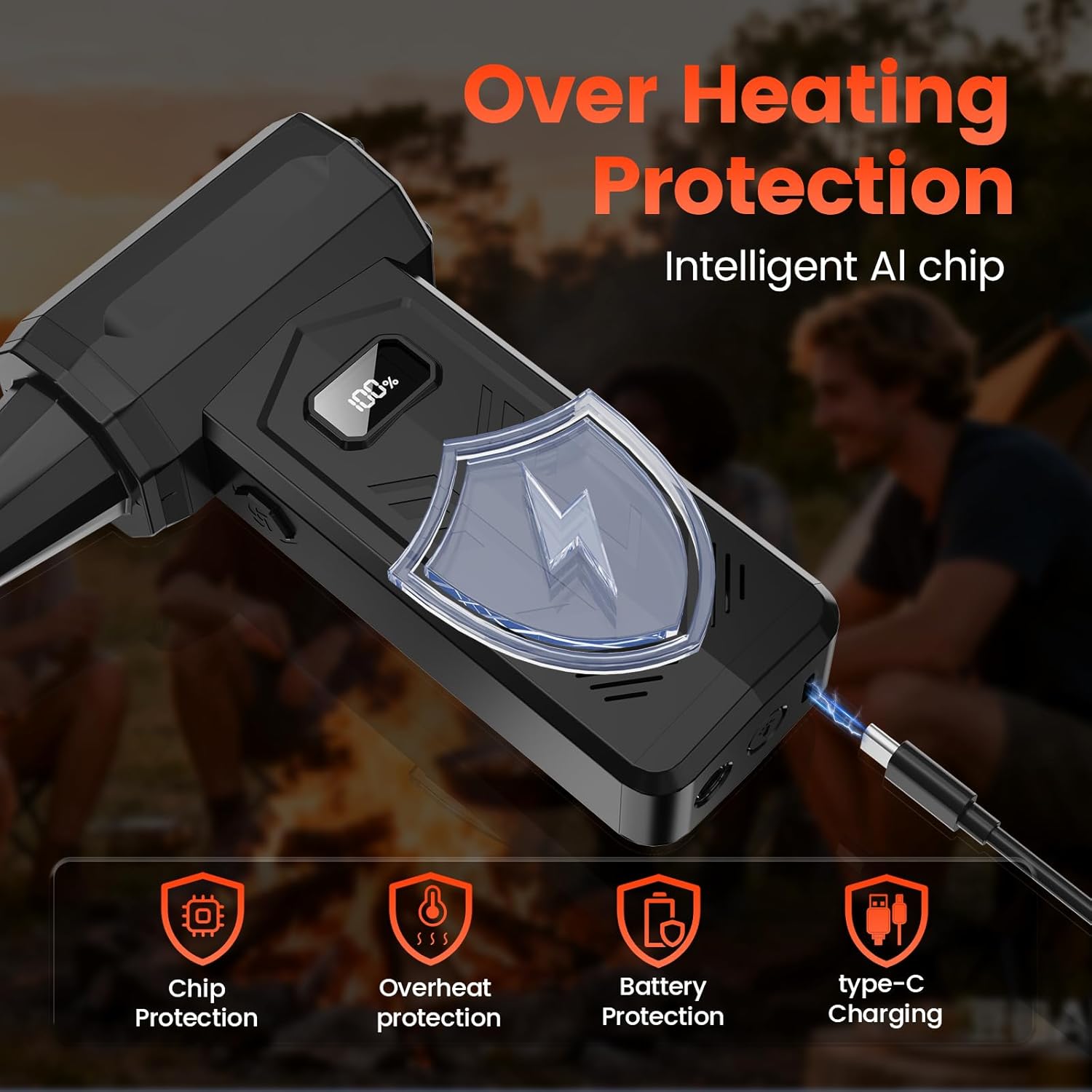 - 【Portable and Versatile】Mini air blower weighing 240g. The electric air duster is lightweight and easy to carry. Jet fan is ideal for cleaning desktops and keyboards, drying pet hair, home clean, car clean etc.Turbo fans also useful for outdoor activities ,such as picnics and fire-starting.