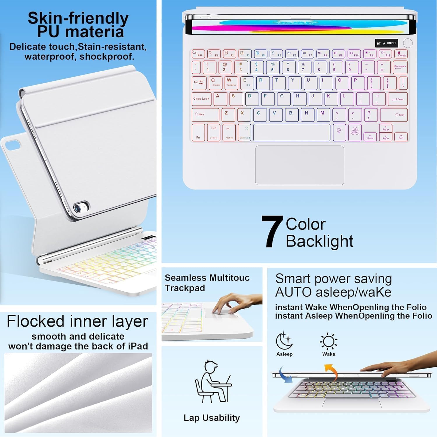 for iPad 11th (A16) & 10th Generation Case with Keyboard – Magic-Style Magnetic – Floating Cantilever Stand - Multi-Touch Trackpad Keyboard Case for iPad 11 inch 2025&10th Gen 10.9 inch (White)
