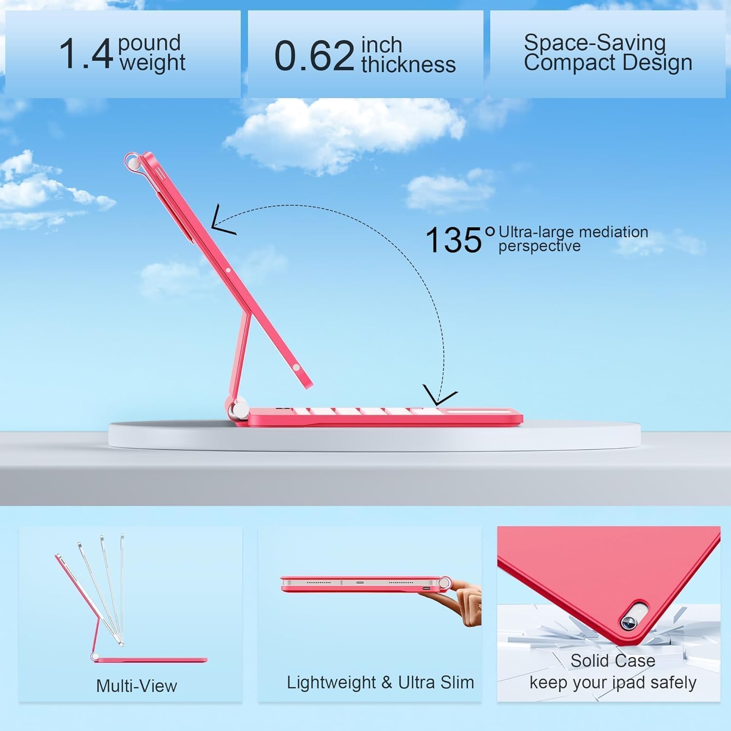 - Floating Cantilever Stand & Multi-View Flexibility: The magic-style floating cantilever stand and strong magnetic attraction hold iPad firmly and stably in place like a laptop, the floating cantilever design allows you to easily adjust to your favorite viewing angle for typing or browsing.
