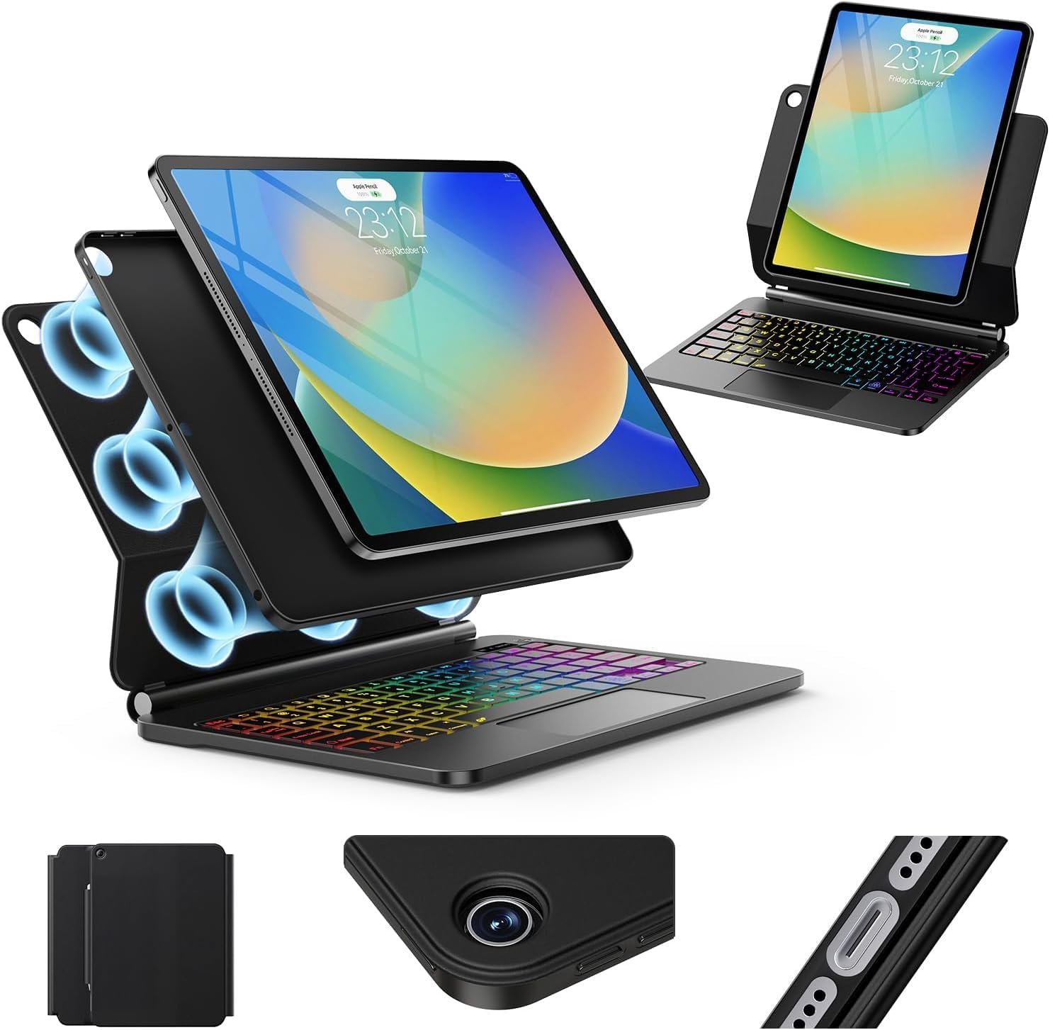 - Floating Cantilever Stand & Multi-View Flexibility: The magic-style floating cantilever stand and strong magnetic attraction hold iPad firmly and stably in place like a laptop, the floating cantilever design allows you to easily adjust to your favorite viewing angle for typing or browsing.